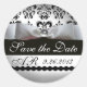 BLACK & WHITE DAMASK RIBBON MONOGRAM Gemstone Classic Round Sticker