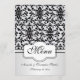 Black and white damask pattern with swirls and birds Wedding Menu. You can adjust text according to your requirements.