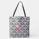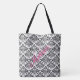 Black White Damask Trendy Cute Girly Name Monogram Tote Bag