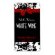 Elegant home made wine labels ready for you to personalise with your own information. Graphic artwork of a black label, with a black and white damask design on top and bottom and a big red ribbon and bow at the top. Great for your home made wines. Customise if you want to change text colour or font style.