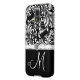 Black & White Damask with Diamond Heart & Monogram Case-Mate Samsung Galaxy Case
