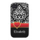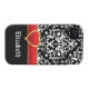 Black white damask with gold band and heart iPhone 4 case, featuring an elegant black white damask pattern with a gradient red band and heart with gold outline. Trendy, fashionable and contemporary yet classic at the same time with a touch of vintage/retro feel to it. Great as a Valentine’s Day, wedding, engagement, birthday or anniversary keepsake gift.