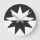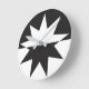 Black White Deco Star Sunburst Round Clock