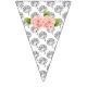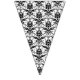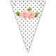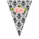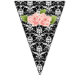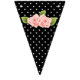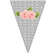 This is a pretty set of bunting flags that consist of black and white designs with some having pink flowers. These flags would look great for any kind of party from weddings to baby showers.