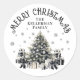 Add a festive and elegant touch to your holiday favours or envelope seals with this round Christmas sticker featuring a sophisticated watercolor Christmas tree. "Merry Christmas" is curved along the top edge in a graceful script font, creating a cheerful frame for your message. Tucked just below that curve is space for your family name, a short greeting, or a custom note in a classic serif font.