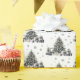 Celebrate the season with this elegant Christmas tree wrapping paper featuring a repeating pattern of a sophisticated black and white watercolor Christmas tree. Each tree is subtly accented with a slight green hue and surrounded by presents and delicate falling snowflakes, giving the design a festive yet refined touch.