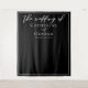 Bold and stylish, our minimalist winter wedding collection features elegant cursive typography for your modern event. Delight your guests with an elegant evening wedding photo booth backdrop with simple white script on a black background.