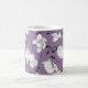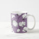 Elegant mug featuring a modern floral pattern with beautiful black and white stylised orchids on a trendy purple.