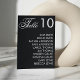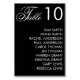 Black and white wedding reception table number seating chart with elegant script font. Personalise it as needed.