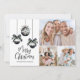 Send warm holiday wishes with this elegant flat Christmas card, now featuring a new layout with the design on the left front and a 3-photo collage on the right side of the front. The artwork includes three black and white watercolor ornaments accented by evergreen greenery and delicate bow details, creating a stylish and festive look.