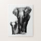 Black & White Elephant & Baby - Animals Art Jigsaw Puzzle