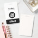 Easily personalise this Custom Administrative professional Name Badge without photo, with Scan Qr Code and large business logo. A simple business design in simple black and white colours fully customisable in front and back sizes, sans-serif basic and modern fonts and a professional and clear look, perfect for small business employee, boss, guests. These business id badges supplies are avaiable with lanyard, metal clip or with retractable. No minimum order, but save money and enjoy Zazzle discounts by multiple orders!