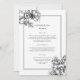 A monochrome etched floral design. Beautiful,details flowers decorate the corners of the page - with a double line border. The text is simple but sophisticated.