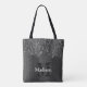 Black white faux sparkles rustic wood Monogram Tote Bag