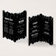 Here is a black and white wedding program with an encompassing white fire burning over the pages of the black program. Perfect for spooky, alternative, gothic, or monochromatic themed weddings and special occasions.