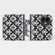 Classic and classy black and white French fleur de lis pattern on a quatrefoil Moroccan trellis lattice print with custom name. Cool and trendy gift for fans of New Orleans, Fleur De Lys, France, and chic geometric graphic patterns.