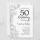 Black White Floral 50th Birthday Party Invitation