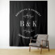 Black White Floral Botanical Monogram Couple Name Tapestry