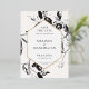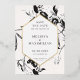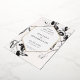 On this modern wedding Save the Date card, a gorgeous black and white flower design is complemented with a real foil golden geometrical frame and elegant wordings in dark grey serif fonts. The reverse of the card is a solid dark grey tone that may be personalised with the couple's monograms in white serif fonts. This Save the Date card is part of our "Black & White Flowers Wedding" collection, which also contains matching pieces for a complete wedding suite.