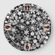 black white floral large clock