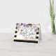 Lovely modern wedding thank you cards. Black and white stripes with faux gold frame and watercolor floral lavender, lilac, violet, purple. Script topography letters. Personalise them by adding your names with option photo / picture inside card.