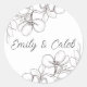Black & White Floral Line Art Wedding Classic Round Sticker