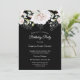 Black White Floral Photo Birthday Party Invitation