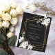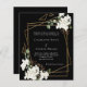 For a classic winter wedding. A black background decorated with white flowers and a faux gold geometric frame. Personalise and add your names and details.