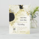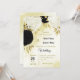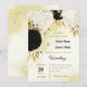 black white flowers gold leaves wedding invitation