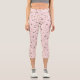 Black White Flowers On Pink Capri Leggings