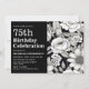 Black White Flowers Women's 75th Birthday Invitation