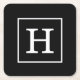 Black White Framed Initial Monogram Square Paper Coaster