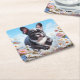 Black & White French Bulldog & Flowers Square Paper Coaster