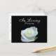 Black and white floral funeral or memorial service invitation postcard, decorated with a beautiful white rose photo - symbol of eternal love. Template text on back makes it very easy for you to customise it.
