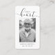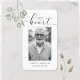 Honour a life beautifully lived with this timeless and elegant funeral photo card. The design features a custom black and white photo at the centre, framed with simplicity and grace. Elegant calligraphy headlines the card, while the loved one's name and life years appear just below the image for a personal, heartfelt touch. On the back, a customisable and tasteful sympathy poem offers words of comfort and remembrance. This card is designed to help families express love and loss with dignity, making it a cherished keepsake for those who mourn.