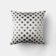 A black and white pillow. Black squares, geometrical pattern. White background colour.