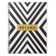 Black & White Geometric Lines Modern Notebook. Customise the front with or without text. The gold area can be left on the design or removed. You may also reposition it anywhere.