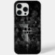 Black white geometric sparkly abstract Monogram iPhone 15 Case. Personalise with your custom initial and name. Triangle Geometric Black Sparkly starry Space pattern made from one photo of a sparkling dust with triangles placed over.