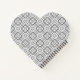Heart-shaped notebook with a minimalistic geometrical pattern in black and white. This stylish and elegant design gives it both a modern and retro feel at the same time.