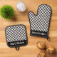 Black White Gingham Checks Design Oven Mitt and Pot Holder Set