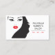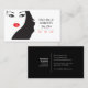 A black & white graphic and mod illustration of a girl's face with red lips and flowing hair becomes an eye-catching identifier on this classic business card design. The girls eyes peering to the right lead potential customers to your name or business name. Perfect for those in the style business, hair salons, spas, etc. © 1201AM CREATIVE