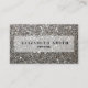 These elegant business cards feature a silver glitter. Your name appears in trendy handwritten script typography. There is also room to include your social media information on the back.