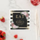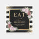 Elegant black and white striped wedding paper napkins featuring blush pink flowers. Matching items available.