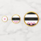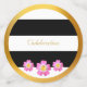 Beautiful wedding table confetti in black, white and gold colours with pink flowers. Beautiful black and white striped table confetti dots are framed with golden circles. "Celebration" and "Party" texts can be personalised. Ideal for wedding, anniversary, birthday, graduation, promotions, bridal shower, citizenship party, and other party celebrations.