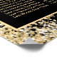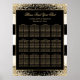 Elegant black and white striped seating chart for 12 tables featuring wedding details inside a gold frame against a black and white background adorned with gold confetti. Matching items available.