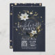 Modern Elegant Black White and Gold Floral Wreath Wedding Bachelorette Party Invitations Template.