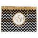 Monogrammed black white and gold glitter texture print chevron geometric design.