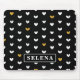 Black White Gold Heart Pattern with Custom Name Mouse Pad