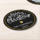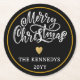 Black White Gold Merry Christmas Round Paper Coaster