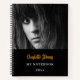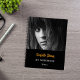 A chic black background. Personalise and add your own photo, a name and text. White and golden text. Sketch interior as default, but you can change it.